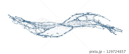 白色背景下彎曲抽象波浪和濺水的 3D 插圖