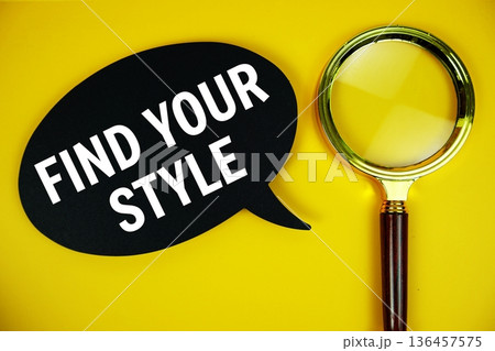 Find Your Style text on speech bubble with magnifying glass on yellow background