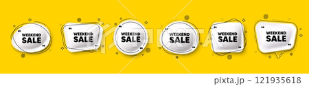 Weekend Sale tag. Speech bubble 3d icons set. Special offer price sign. Advertising Discounts symbol. Weekend sale chat talk message. Speech bubble banners with comma. Text balloons. Vector