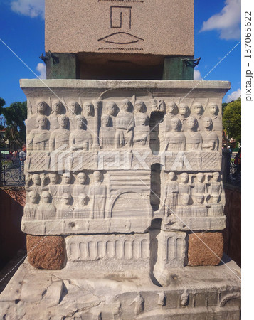 Stone Relief Base of Ancient Egyptian Obelisk at Sultanahmet Square Istanbul