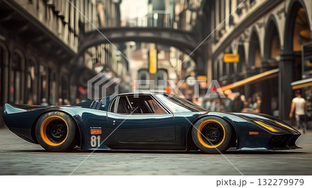 Sleek Dark Green Vintage Race Car in City Alleyway