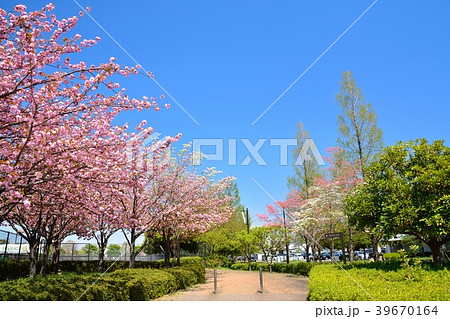 春天的男人公園(櫻花和新鮮的綠色)