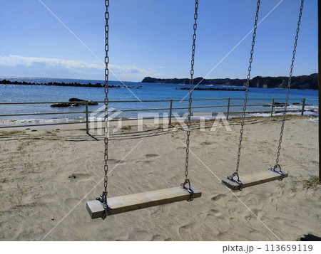 在海灘鞦韆上享受清爽、輕鬆的自由感