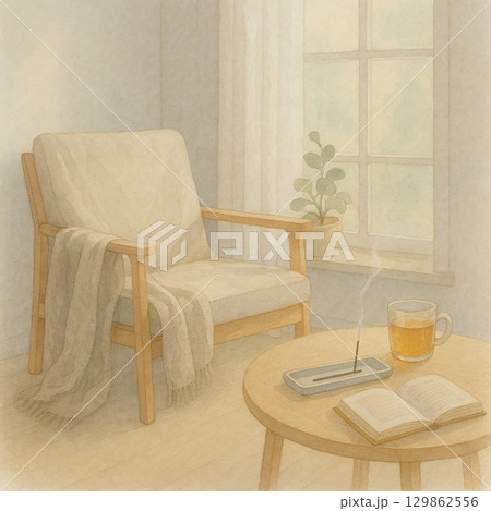 夕陽下的三葉花扇|水彩畫|寧靜溫馨的房間