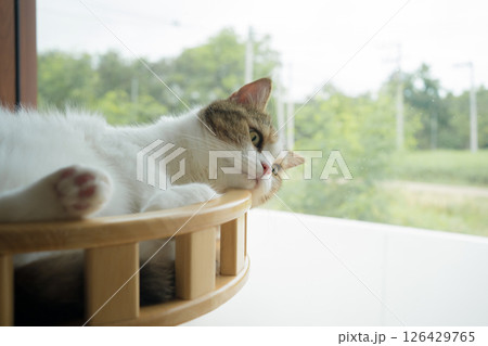 pet care concept with british cat relax and play in living room
