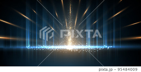 Elegant golden stage vertical glowing with lighting effect sparkle on black background. Template premium award design.