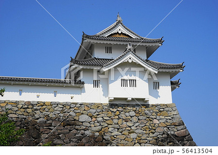 京都府田邊丹后城、大手門和藍天舞鶴市的石牆/土牆