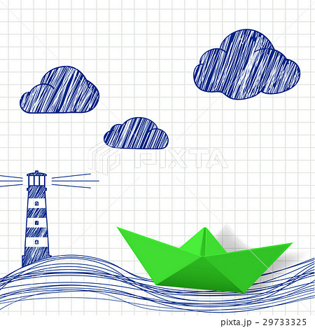 Paper boat and painted lighthouse.