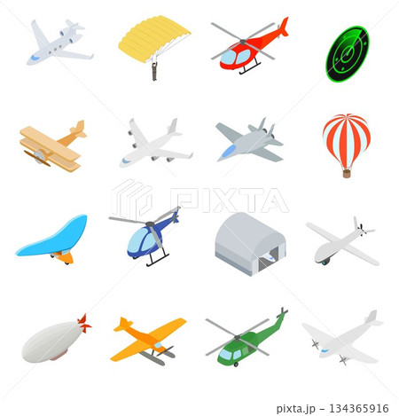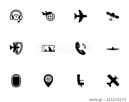 Aviation academy and airline airport icons set. Individual air tours, dispatching service emblem or badge. Passenger airliner, vintage propeller monoplane and biplane aircraft vector
