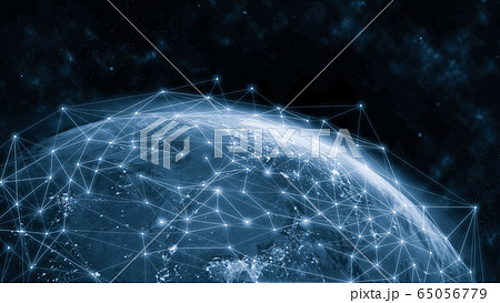 Global technologies data on the world map banner background. 3d computer network covering the planet Earth. 5G, navigation, internet concept. Elements of this image were furnished by NASA.