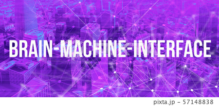 Brain Machine Interface BMI concept with neural network gradient city background