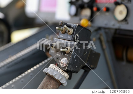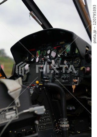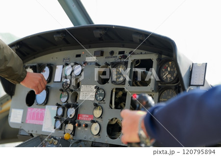 Main rotor system of a helicopter at a military airfield during daylight hours