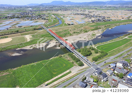 從福岡縣築前町上方的天空俯瞰九州路鳥棲國際機場和築後川