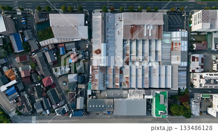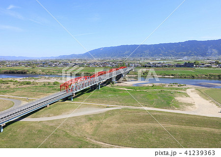 無人機拍攝的福岡縣久留米市築後川及城市景觀鳥瞰圖。