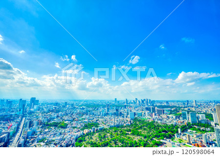 從天空的東京港口在東京灣和東京的東京中心清楚的天空