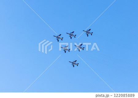 藍天飛翔的飛機 藍色衝擊波、藍天、日本航空自衛隊、戰鬥機、飛機、入間空軍基地