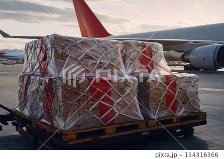 Busy International Airport Cargo Terminal with Wrapped Freight on Pallet
