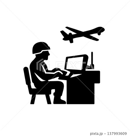 Compact drone and remote controller on a white desk near a computer keyboard. Technology, aerial photography, remote control aviation, and modern gadget tools for creative digital content production.