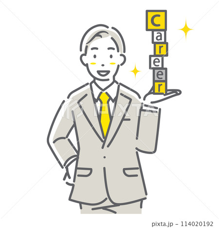 一個簡單而時尚的線條畫插圖,描繪了一個商人建立自己的職業生涯