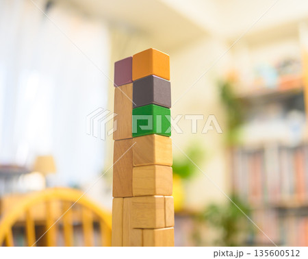 以嘎嘎作響、平衡良好的方式堆疊積木的圖像