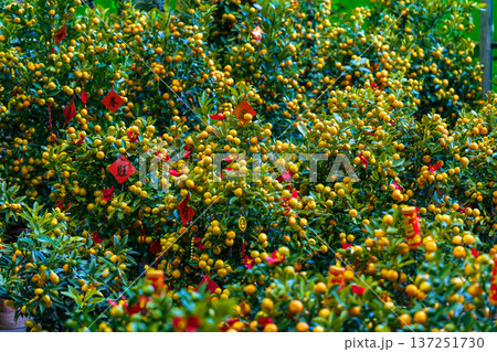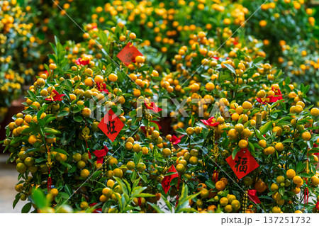 慶賀新春的橘子盆栽裝飾