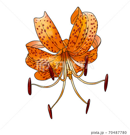 一張俯視角度拍攝的夏季盛開的虎百合彎曲花瓣的照片。