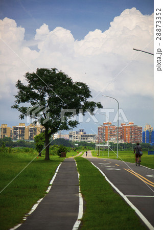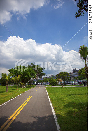 藍天白雲,草地,自行車道,Blue sky, white clouds,青い空、草、自転車道、