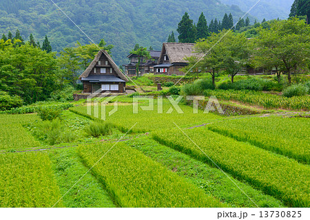 Gokayama Aikura村莊殖民地新鮮綠色的解決