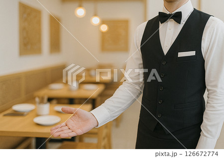Thai waiter welcome to authentic thai restaurant