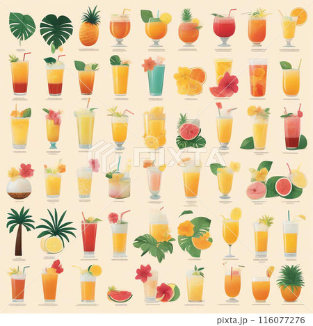 插圖集:新鮮果汁和夏季熱帶植物