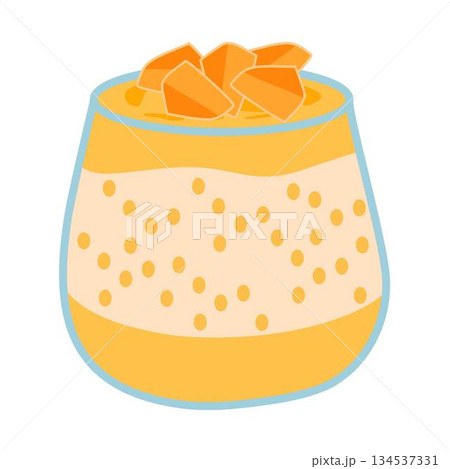 芒果布丁佐鮮奶油甜點,盛於玻璃杯中