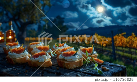 Cursed Crostini with Fig and Mascarpone in Haunted Vineyard under Moonlight
