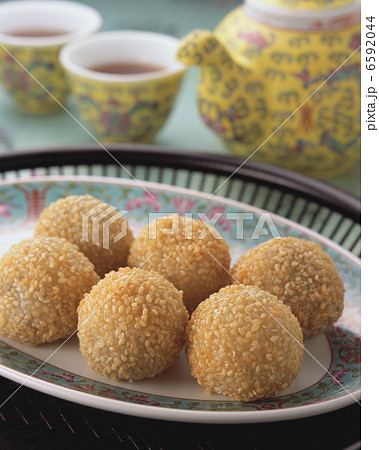 芝麻串餃子和茶
