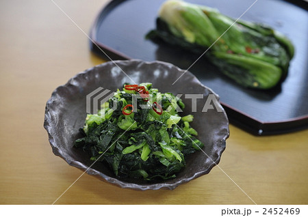 三個圓形海苔飯糰,竹皮包裹,佐以醃菜。毛筆繪製,霧面飾面。