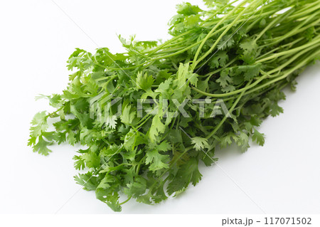Parsley greenery, isolated vector cilantro or coriander garden spices branch with leaves. Cartoon fresh herb, plant for cooking, aromatic condiment. Seasoning twig, vitamin food