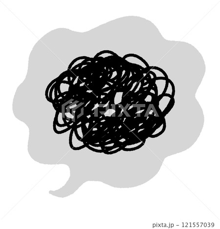 凌亂的線條和氣泡,感到困惑、不滿、思考