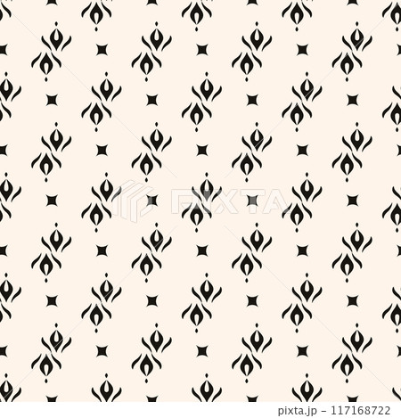 Vector black and white floral seamless pattern. Abstract minimal geometric ornament with flowers in oriental style. Simple monochrome background.