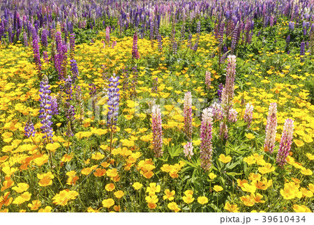羅素羽扇豆和罌粟花簇