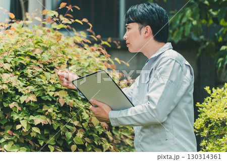 枯死的龍舌蘭花莖和園丁的鋁製三腳架