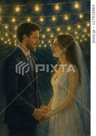 燈光下的婚禮誓詞 | 水彩風晚間婚禮 | 新人與他們的深情