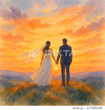 夕陽下的婚禮背影 | 未來的愛情行程 | 新郎新娘的影子 | 夕陽婚禮,新郎新娘的背影