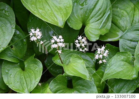 六甲山森林地面上可見的一種白色開花植物,美麗的白色花朵分散在稀疏的分枝圓錐花序中。