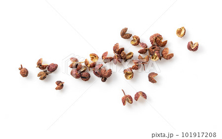 手繪水彩繪製的日本胡椒葉和水果插圖