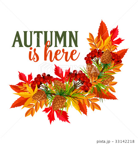 horizontal garland with red, orange, brown and yellow autumn leaves