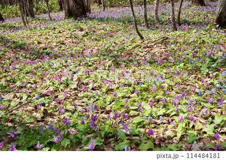 森林景色中點綴著成群的白色彼岸花