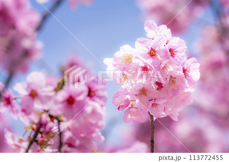 福島縣喜多方市中部線的春天的櫻花樹、垂枝櫻花