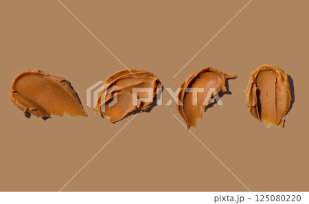 Fresh made creamy Peanut Butter, on black wooden table background, with copy space for text