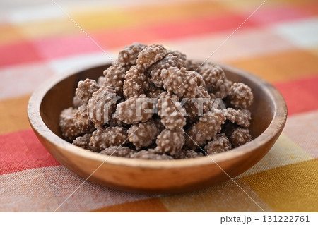 Roasted Peanut bean fall down in group, Roasted Peanut bean float explode, abstract cloud fly. Roasted Peanut beans splash throwing in Air. White background Isolated high speed shutter, freeze motion