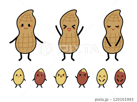 Flat vector icon of whole and peeled peanuts. Natural and tasty food. Organic product. Graphic