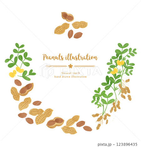 Hand drawn peanut branch and kernels design template. Organic food vector illustration on white background. Retro nut background. Engraved style botanical picture.